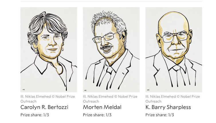 1 day agoThe 2022 Nobel Prize for achievement in the field of chemistry was jointly awarded to Carolyn Bertozzi Morten Meldal and K. 1 day agoCarolyn Bertozzi US Morten Meldal Denmark and Barry Sharpless US win chemistry Nobel. Barry Sharpless for the development of click chemistry.